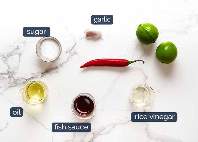 Here’s what you need for the Vietnamese Nuoc Cham salad dressing: